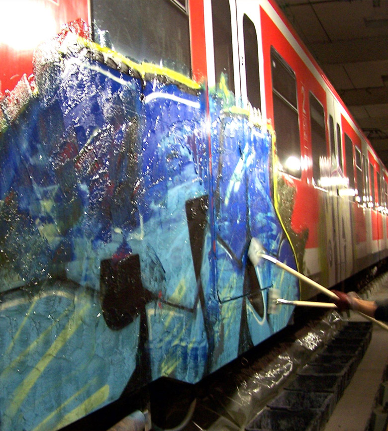 Unsere Firma bietet spezialisierte Dienstleistungen für Schienenfahrzeuge an, von GFK-Reparaturen über Graffiti-Entfernung bis hin zur Lackinstandsetzung und Versiegelung.